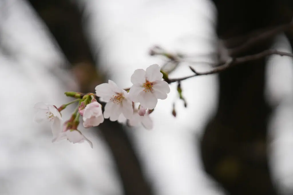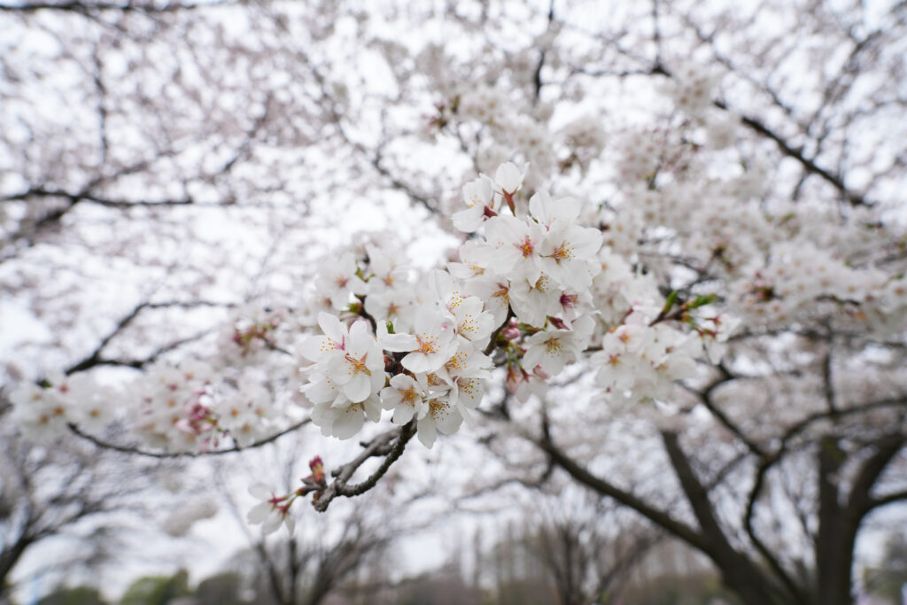 ソメイヨシノの花の色は、よく観察しているとわかりますが、実は変化します。つぼみはピンク色、咲き始めの花びらは真っ白に近いですが、徐々に花の中心部が赤くなっていきます。中心部かかなり赤くなると、散り始めのサインとも言えます。