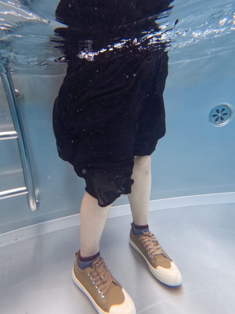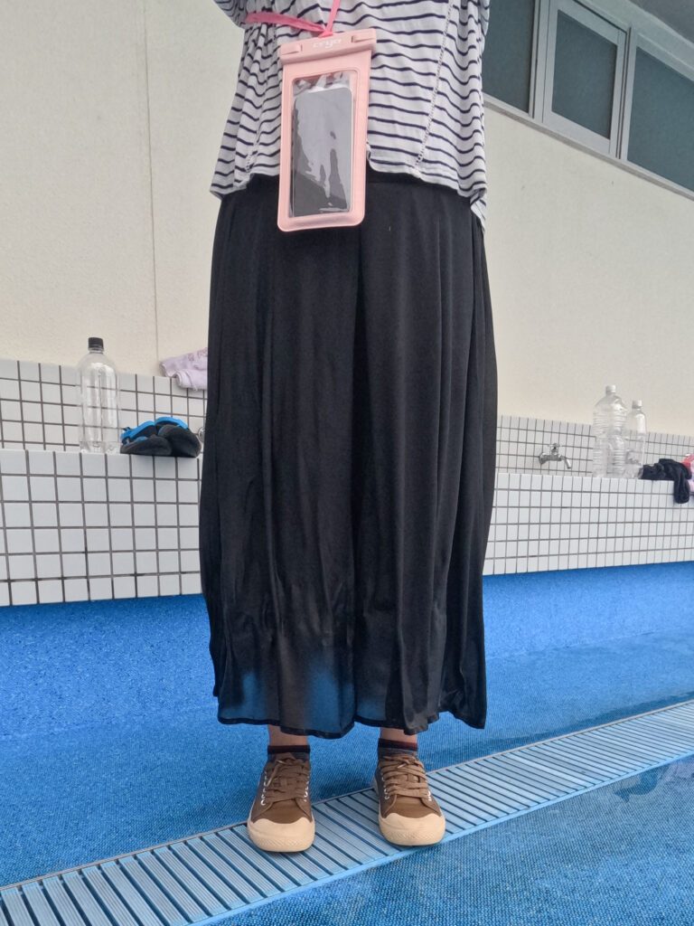 水難事故にあう時、服装を選べることはあまりないと思いますが、水中で動きづらい服装があることもわかりました。例えばスカートは足にまとわりついて、とても動きづらかったそうです(本人談)。もしも、大雨や台風など、水害の中を行かなくてはならないときに余裕があるのであれば、水中で動きやすい服にしておいた方が体力も奪われません。
