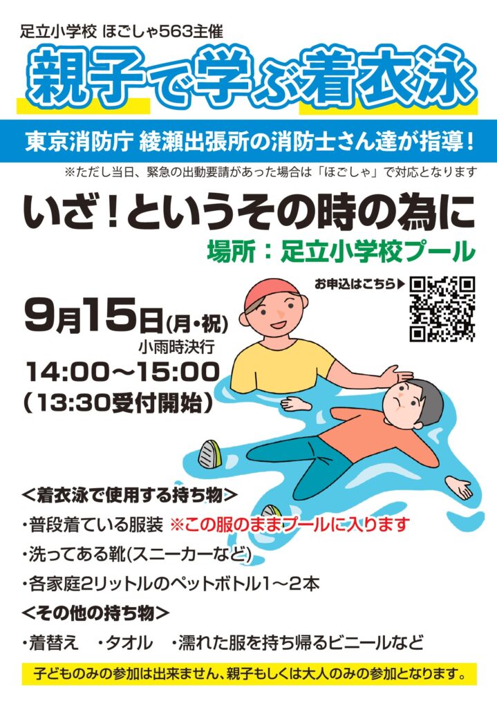9月15日はC4thで開催をお知らせしていた、「親子で学ぶ着衣泳」を実施しました。