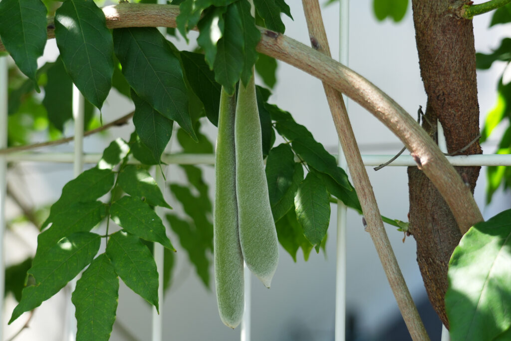そうです、そら豆のような実がなっていますね。さらに拡大!